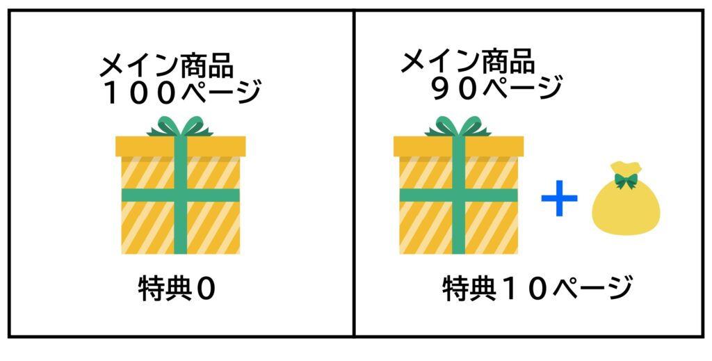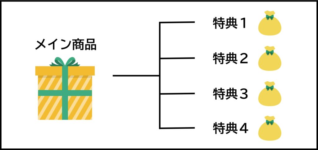 先程の上の図で気がついたかもしれませんが、メイン商品の一部を特典化してしまえば良いだけです。
